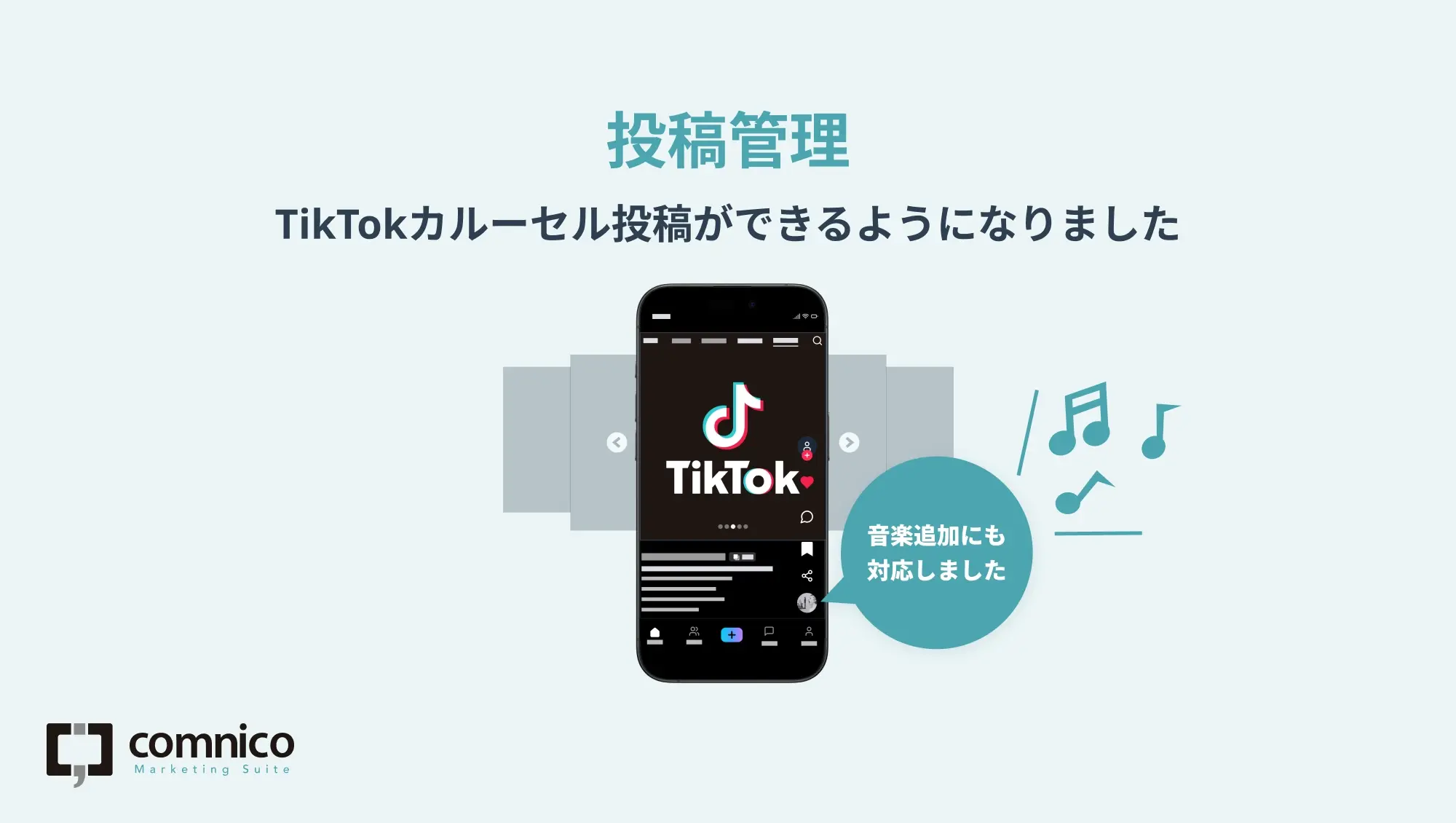 【3月アップデート】Xで画像と動画を組み合わせた投稿ができるようになりました ほか コムニコ マーケティングスイートの3月度アップデート情報をお知らせします。 続きを読む アップデート 【3月アップデート】TikTokカルーセル投稿に対応しました ほか コムニコ マーケティングスイートの3月度アップデート情報をお知らせします。 続きを読む アップデート 【12月アップデート】自社アカウント分析と競合比較で投稿時間ごとにデータを分析できるようになりました コムニコ マーケティングスイートの12月度アップデート情報をお知らせします。 続きを読む アップデート 【11月アップデート】サポートチャットでBotによる自動応答とAI検索機能をご利用いただけるようになりました コムニコ マーケティングスイートの11月度アップデート情報をお知らせします。 続きを読む アップデート 【9月アップデート】XとInstagramの投稿案をAIで作成できるようになりました! ほか コムニコ マーケティングスイートの9月度アップデート情報をお知らせします。 続きを読む アップデート